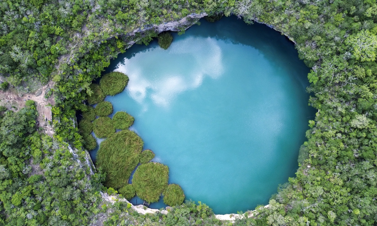 En Aldama se encuentra El Zacatón, una joya natural impresionante de nuestro estado, un lugar sorprende por su profundidad, tonos turquesa y esmeralda que regala a quienes lo visitan.